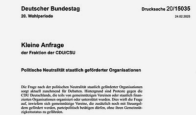 Als Frontalangriff auf die Zivilgesellschaft verstehen viele die sogenannte «Kleine Anfrage» (32 Seiten, 551 Fragen) der Union zur «Finanzierung» und angeblich für «fragwürdig» gehaltenen Gemeinnützigkeit von 17 gesellschaftlichen Gruppierungen, darunter BUND, «Omas gegen rechts», Campact und das Redaktionskollektiv Correctiv, Foodwatch sowie die Deutsche Umwelthilfe. Wer an einen «faux pas» gedacht hätte, sieht sich übel getäuscht.